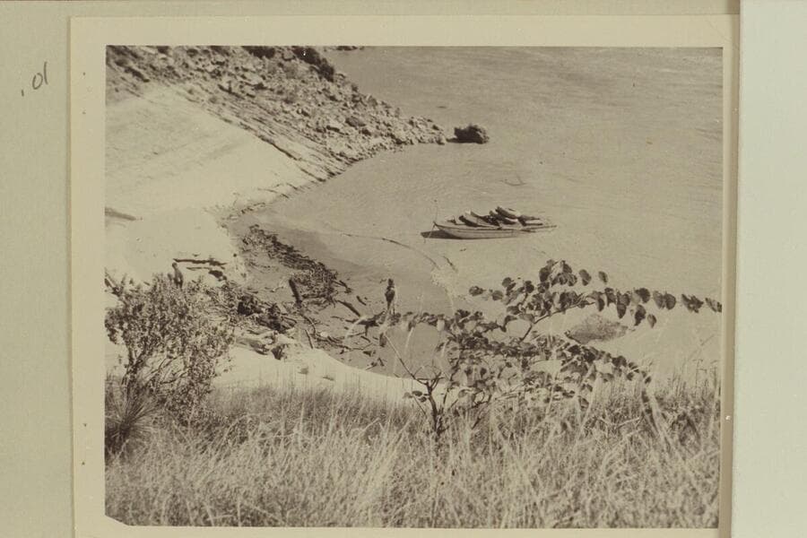 Dock Marston stands near the bow of the "Esmeralda II" above Vaseys Paradise