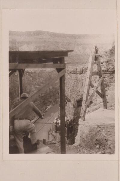 Skip on cable between the ledge camp and the river. Upper Marble Canyon damsite