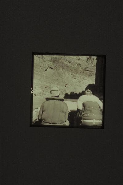 Approaching Bedwall Cavern. Belknap is at the controls of the "Cactus" and Taylor rides at the right