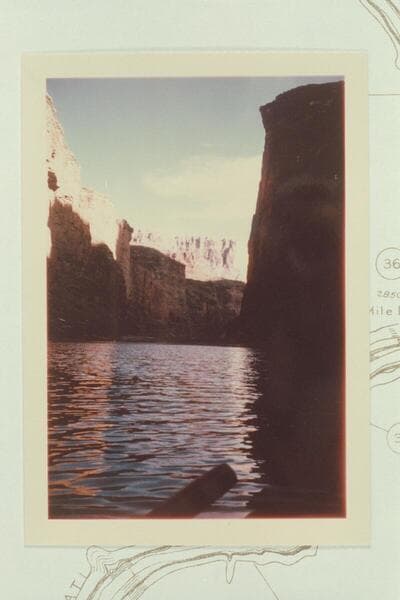 Downriver from the scaffold at Marble Canyon Dam site. Mile 39 1/2 but the frame of the transparency is marked Mile 37 1/2