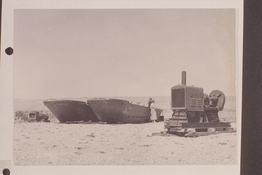 Drilling equipment used in anchoring the cable rigs at the Rim of Marble Canyon. Lower Marble Canyon damsite, Mile 39