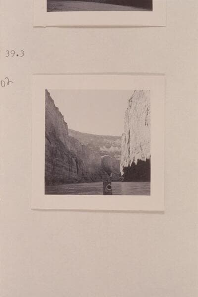 Left wall near dam site at Mile 39 1/2 showing crack. Looking upstream
