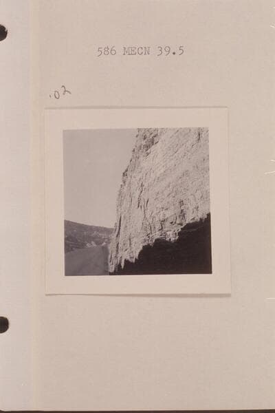 Left wall near dam site at Mile 39 1/2 showing crack. Looking upstream