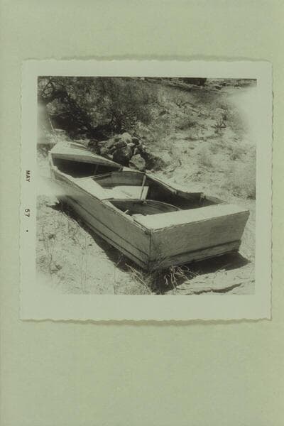 Loper's boat found at Mile 41 in Marble Canyon and pulled up on the talus by the crew
