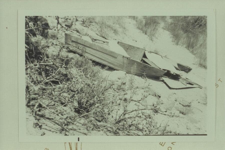 Loper's boat found at Mile 41 in Marble Canyon and pulled up on the talus by the crew