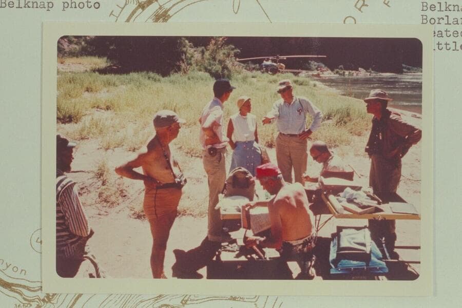 Camp at Mile 43 now known as President Harding Rapid. USGS party