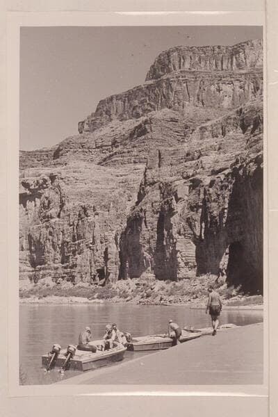 Crew preparing for departure from Lees Ferry: Sanderson; Taylor; Desloge; Visbak; Cutler; Jim Jordan; Belknap; Buzz Belknap