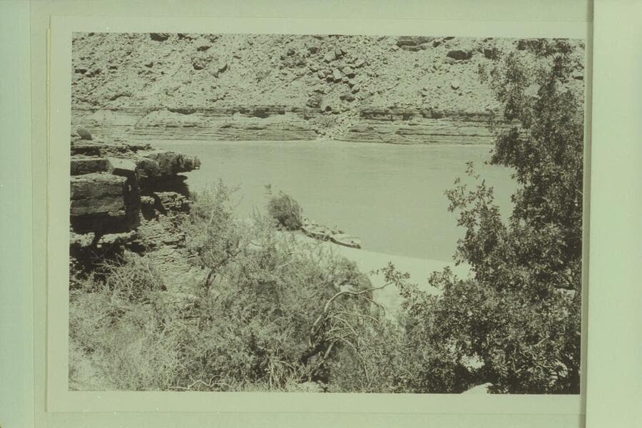 Loper's boat found at Mile 41 in Marble Canyon and pulled up on the talus by the crew