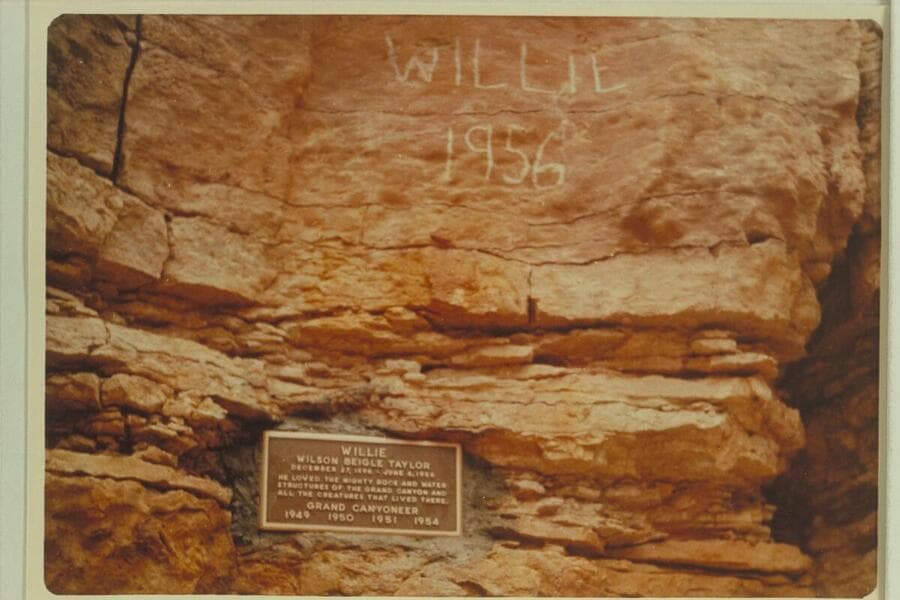 Plaque and marking at Willie's grave. Mile 44 in Marble Canyon