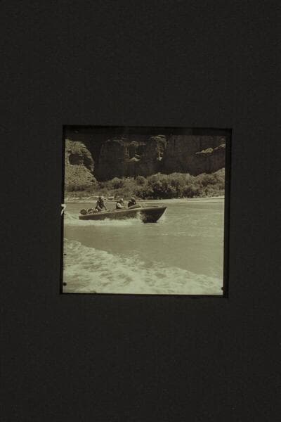 The "Rattlesnake" cruising into the lagoon at the "Little Colorado." Cutler; Rod Sanderson; Joe Desloge