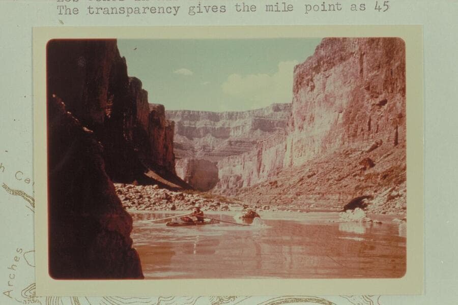 Down from Mile 44 1/2. Les Jones in his aluminum boat. The transparency gives the mile point as 45