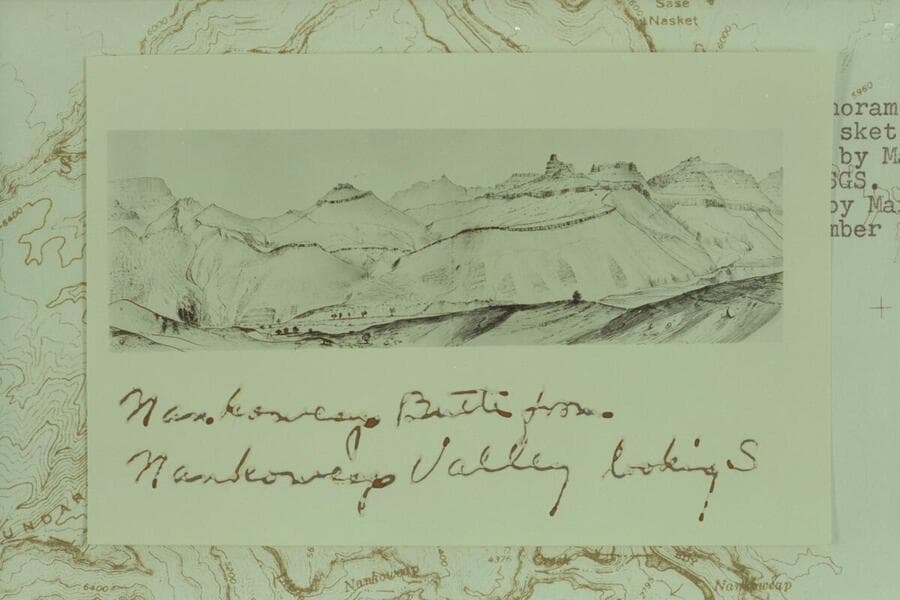 ![Panoram of two Young sketches prepared by John Maxon and the USGS. Sent by Maxon in 1965, Sep. [on photo: Nankoweap Butte from Kwagunt Valley, looking N.]](/_next/image?url=https%3A%2F%2Frail.huntington.org%2FIIIF3%2FImage%2F22APN4I7WPD7%2Ffull%2F%5E360%2C%2F0%2Fdefault.jpg&w=750&q=75)