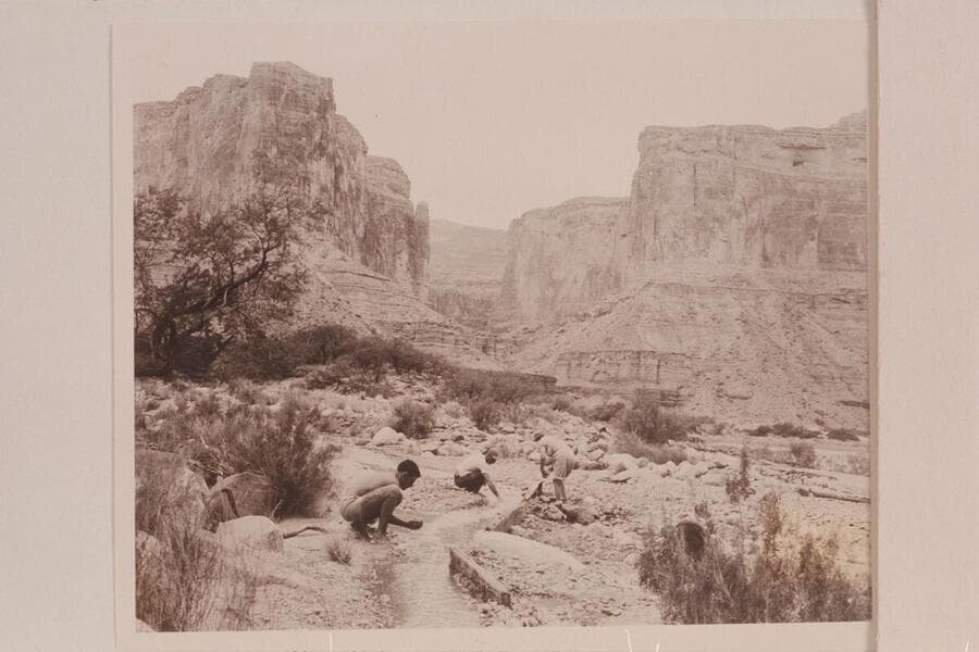 Diverting the water from Nancoweap Creek. M. Marston; Nevills; Elma Milotte; Garth Marston; Henderson; Pauline Saylor