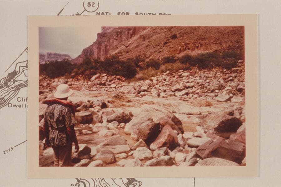 Jack Couffer and Bill Belknap at the small salt pool at the bottom of the fall at the Salt Spring, Kwagunt Rapid