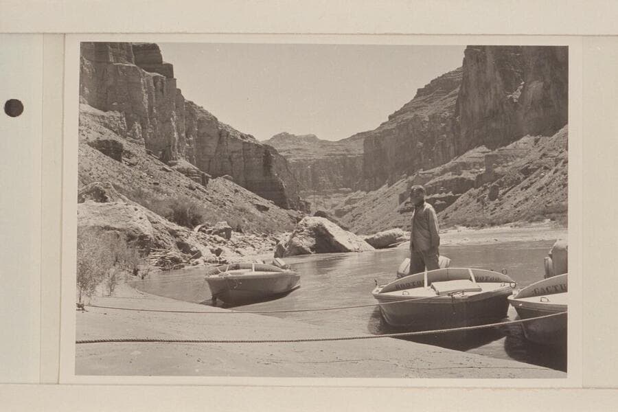 Joe Eisaman stands in the "BOOTOO" at the mouth of the Salt Canyon opp. Kwagunt Canyon, Marble Canyon at Mile 56