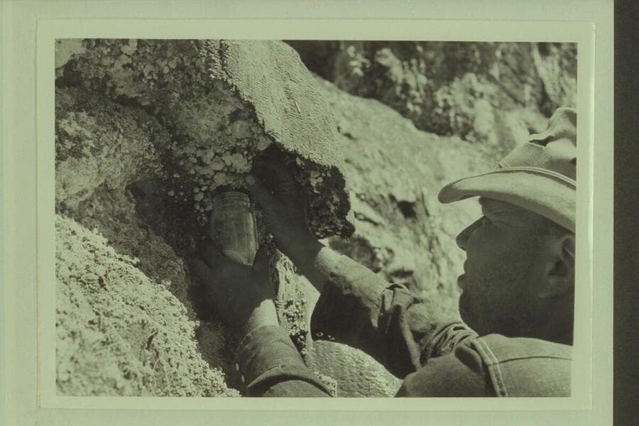 Bill Belknap gathers salt samples at the salt spring, opposite Kwagunt Canyon in Marble Canyon. Mile 56