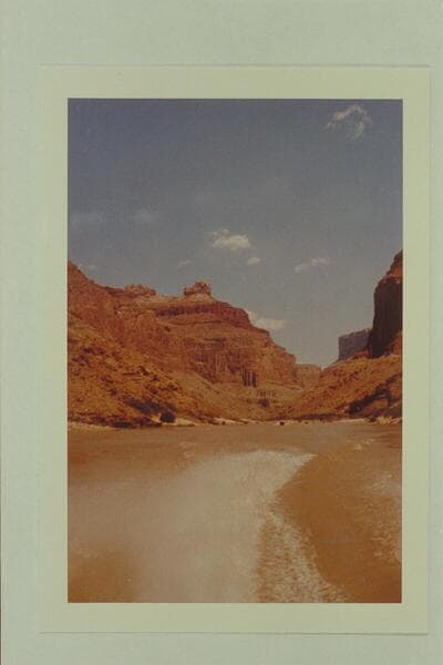 Upriver to Awatubi (?) Crest from near the mouth of the Little Colorado River. Colin Fletcher appears in the photo