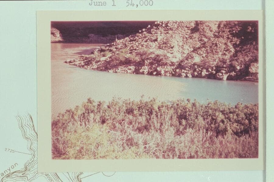 Ed Hudson running the "Esmeralda" in the lagoon at the mouth of the Little Colorado. Lees Ferry gauge: 63,300 cfs