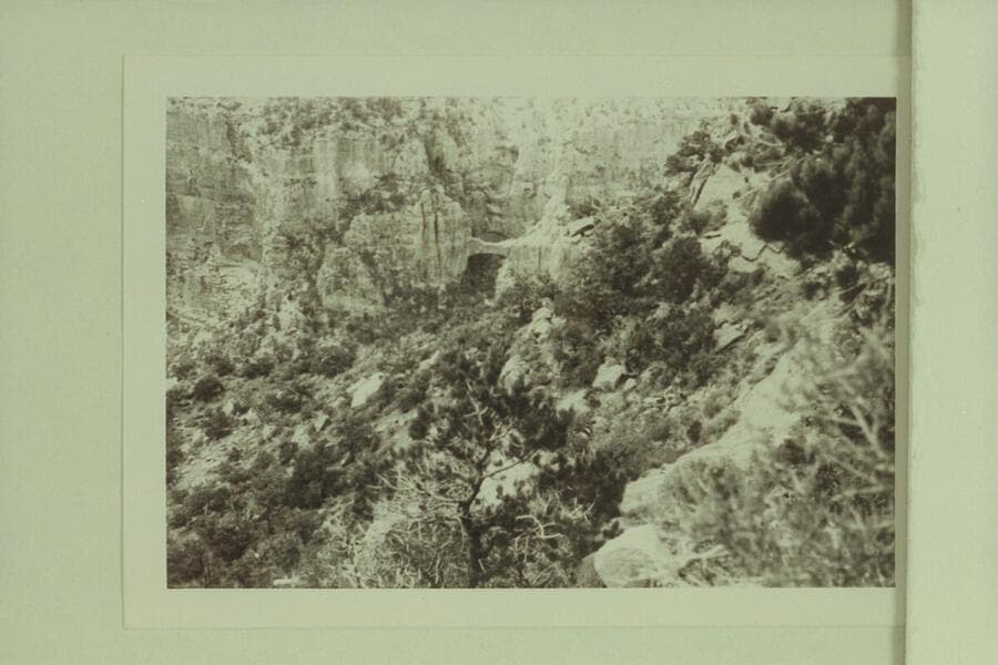 Bridge at upper end of Lava-Chuar Canyon. From across canyon at upper part of Supai