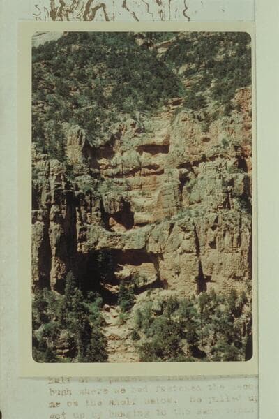 Bridge at upper end of Lava-Chuar Canyon. From across canyon at upper part of Supai