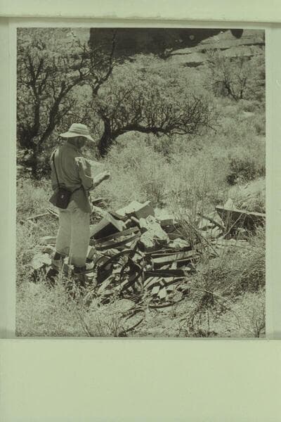 Marston examining the remains of the old still near Lava Creek in Grand Canyon