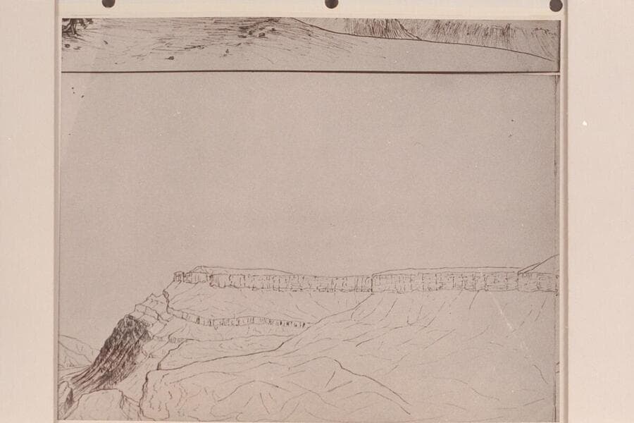 Copy of original sketch captioned: Ridge south of Lava Canon. Probably drawn by B. L. Young