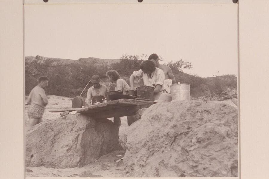 Dishwashing at Diamond Creek: Wright, Lucile Hiser, Garth Marston, Ros Johnson, Nancy Streator