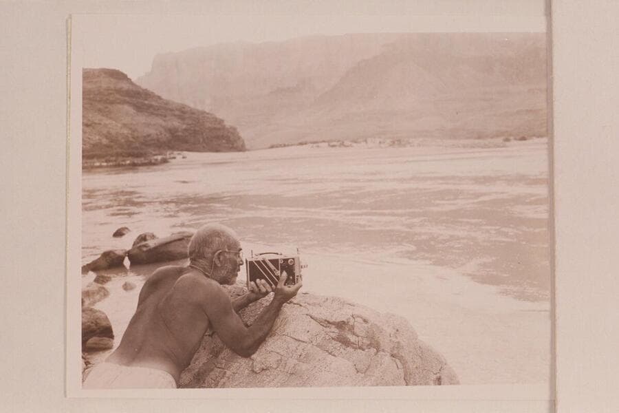 Bruce Wilson and Garth Marston swimming at the foot of the Tanner Trail
