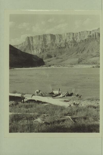 Marston and Ed Hudson make preparations for third day of cruise on the "Esmeralda"; foot of Tanner Trail