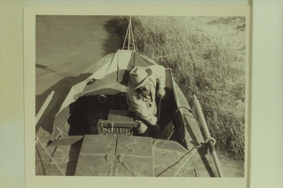 Marston and Ed Hudson make preparations for third day of cruise on the "Esmeralda"; foot of Tanner Trail