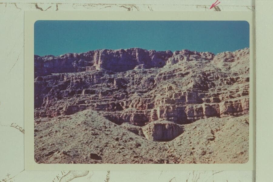 Indian ruin overlooking Cardenas Creek. The loop of the river above the mouth of Cardenas Creek is at center. Comanche Point is upper right