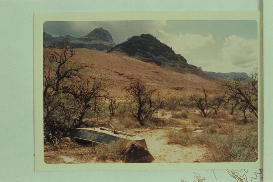 Bottom of metal boat at Cardenas Creek showing joint where fore and aft sections were bolted together