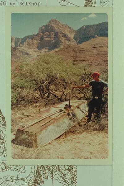 Bottom of metal boat at Cardenas Creek showing joint where fore and aft sections were bolted together