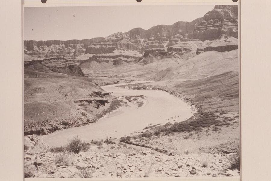 Mouth of Cardenas Creek at Mile 71.1. View is from upriver from near the ruin overlooking Cardena [sic] Creek. Comanche Point is upper right