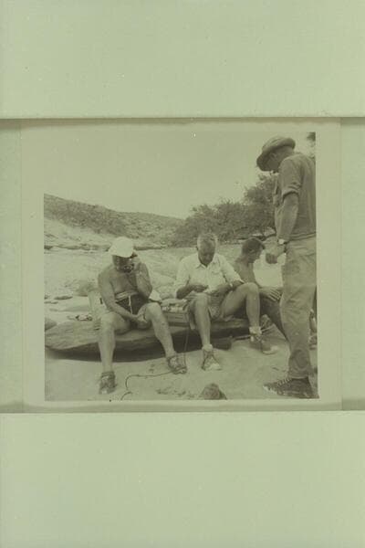 ![Les Gear holds the aerial while the attempt is made to get communication with the Rim. Dock Marston; John Doerr; Doc [sic] Hill; Russ Haverick. Lower end of Unkar Rapid](/_next/image?url=https%3A%2F%2Frail.huntington.org%2FIIIF3%2FImage%2F22APN4IC286S%2Ffull%2F%5E360%2C%2F0%2Fdefault.jpg&w=750&q=75)