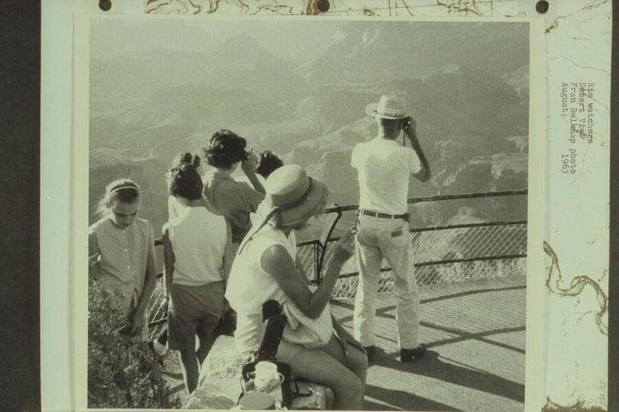 The Wrim Wrens at work near Desert View Tower. Unkar Creek upper center