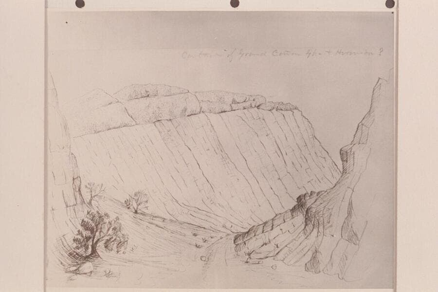 Looking up the Grand Canon from Unkar Valley. The sketch is by B. L. Young