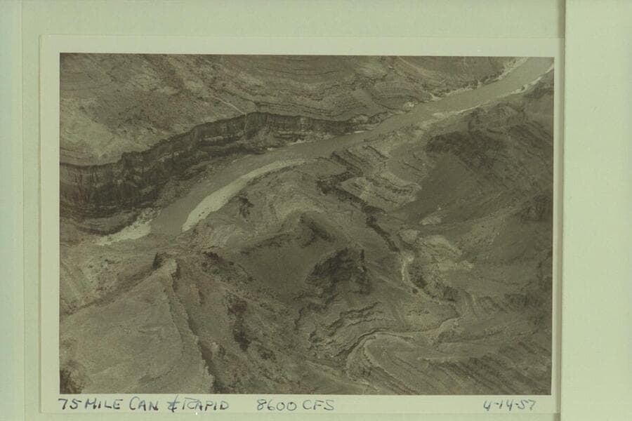Seventy-five Mile Rapid. Approximate gauge: 8,600 cfs