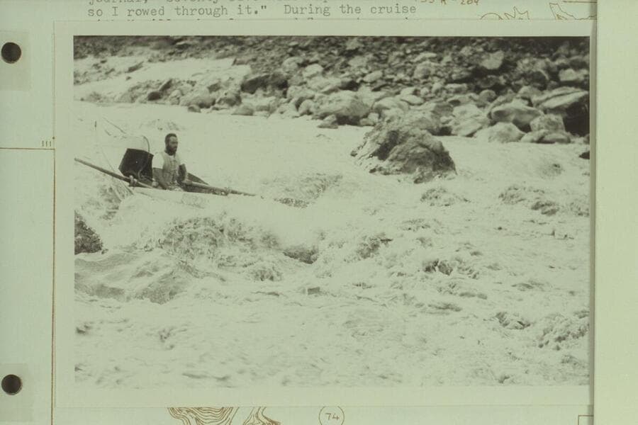 Barry Goldwater pushing a Nevills sadiron through a rapid