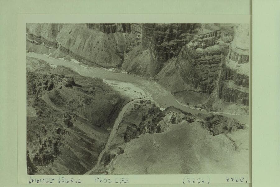 Looking southeast to rapid at Mile 137.65. Approximate gauge: 8,600 cfs