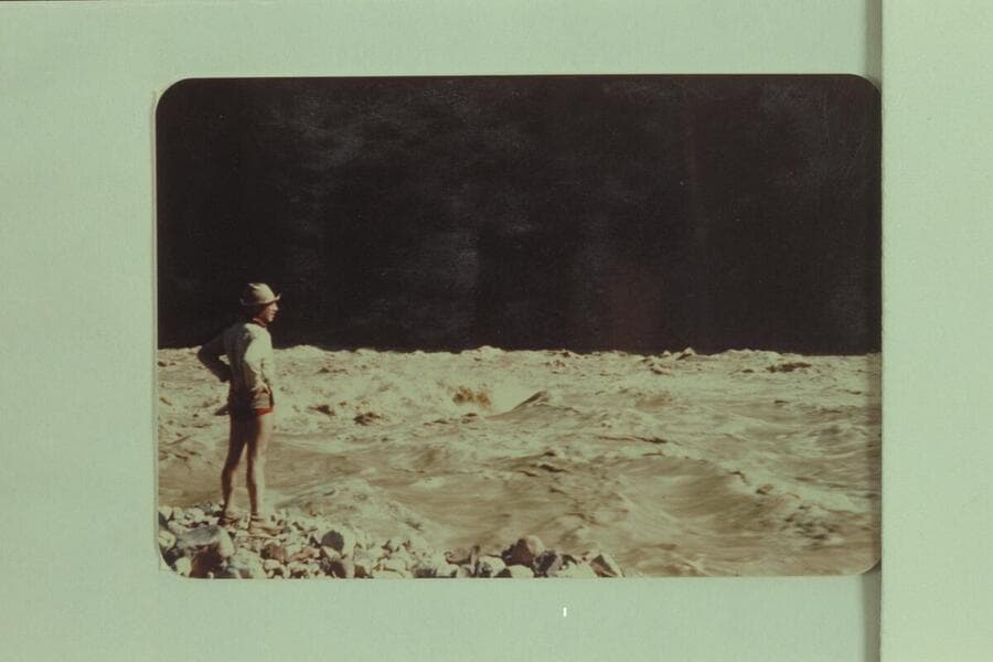 Marston sizing up the situation in Hance Rapid before running the "Esmeralda" through it