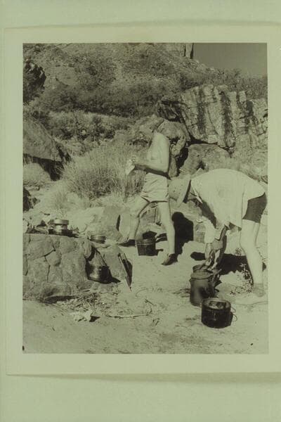 Joe Desloge and Ed Hudson in camp at the head of Hance Rapid