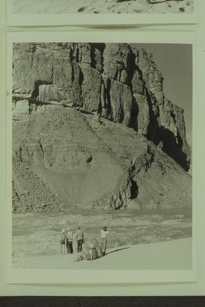 Study of Hance Rapid before running on the morning of June 15, 1950. Left to right: Forcier, Desloge, Marston, Ed Hudson, Edward Hudson and Taylor