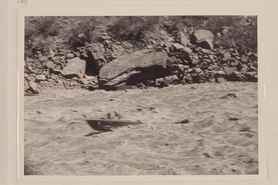 Hance Rapid- boat has crossed below tongue opposite rk. and is turning downstream