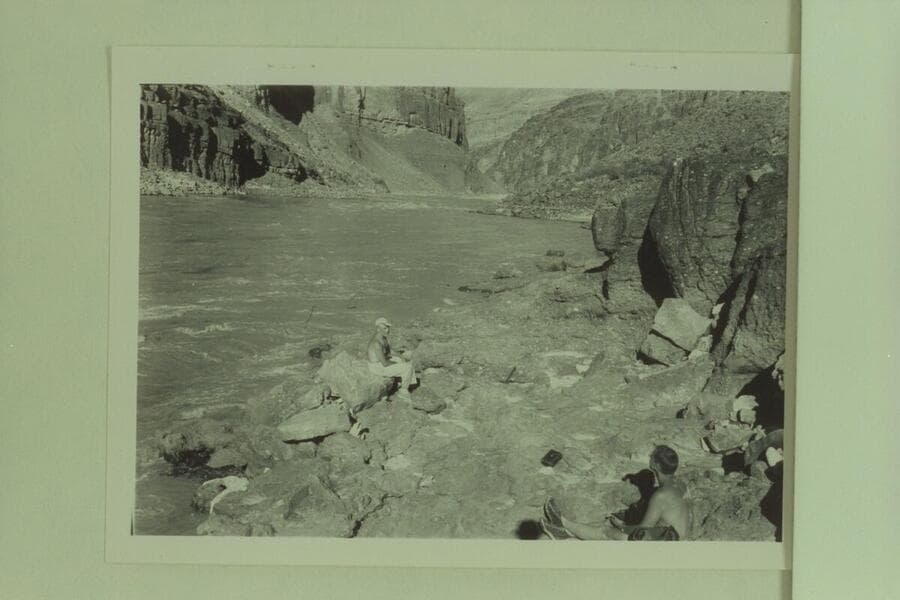 Johnny Maxson and Joseph Desloge study Archean Hotauta below Hance Rapid; @ Mile 77