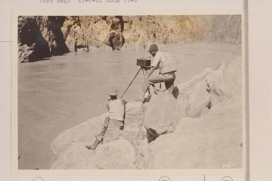 ![Moore and LaRue taking a panoram picture hear foot [sic] of Sockdolager Rapid. Note the dangerous breeches and boots worn by Moore](/_next/image?url=https%3A%2F%2Frail.huntington.org%2FIIIF3%2FImage%2F22APN4ZTXTXT%2Ffull%2F%5E360%2C%2F0%2Fdefault.jpg&w=750&q=75)