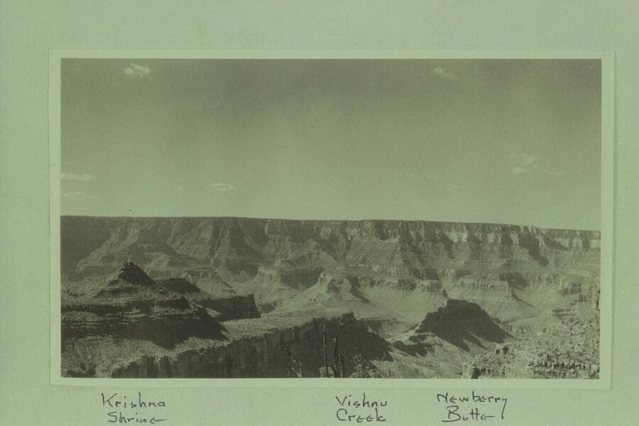 Morning view of South Rim from Wotan. From "the set of post card prints taken in situ on Wotan'[s Throne, 1954, Sep." From Bill Beatty to Bill Belknap