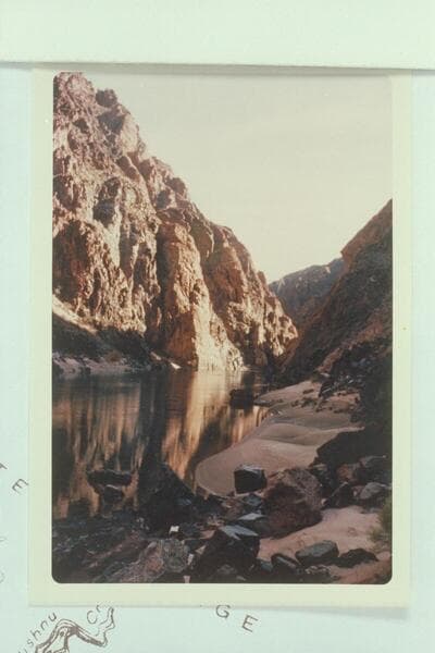 Upriver to side canyon and foot of trail which reaches the river at Mile 30.2