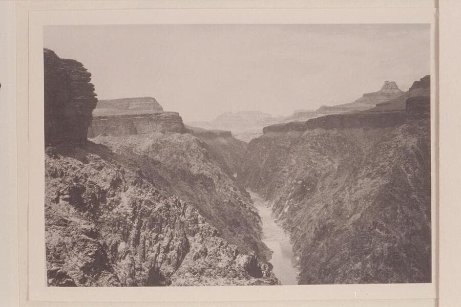 Grapevine Rapid which Stanton thought was Dockdologer Rapid. The photo is taken from the top of the pre-Cambrian and a typical Tonto cliff shows at left