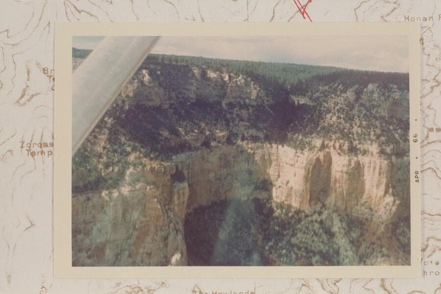 Cottonwood Canyon. Arrow points to Butchart's route on east side